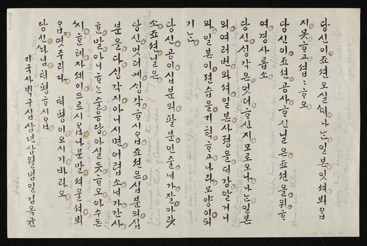 케임브리지대 도서관의 해리 파크스 아카이브에 1세기 이상 보관돼온 이 서한은 한글로 쓰였으며 영문 번역이 연필로 덧붙어 있다.