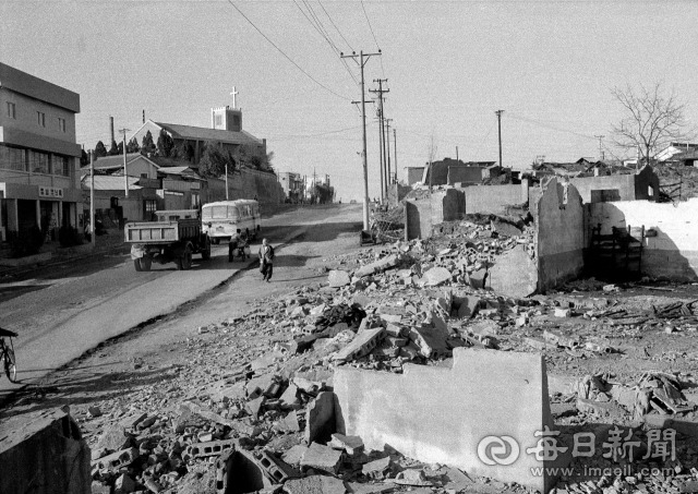 1979년 12월 26일 대구 동서관통로(구 대동·대서로, 현 달구벌대로) 시작점인 반월당. 마침내 도로가 말끔히 포장됐습니다. 확장된 도로는 중앙에 화단까지 갖추고, 직경이 100m에 달하는 반월당네거리는 광장을 방불케 합니다. 1965년 폭 50m, 총 연장 10km의 동서관통로를 계획한 지 어언 14년. 기나긴 여정이었습니다. 실로 지난한 세월이었습니다.