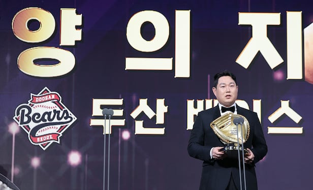 두산 포수 양의지(38)가 열 번째 황금 장갑을 품에 안았다. 양의지는 9일 서울 롯데호텔 월드에서 열린 2025 KBO(한국야구위원회) 골든글러브 시상식에서 포수 부문 골든글러브 수상자로 선정, 이승엽 전 두산 감독과 함께 골든글러브 최다 수상 기록과 타이를 이뤘다.