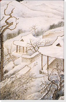 산에 낀 검은 구름 깨닫지 못하다가창문 열고 보니 평원엔 눈이 가득