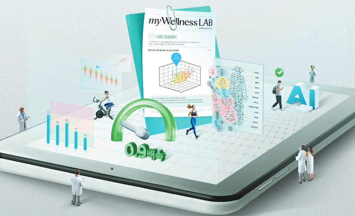 ‘마이웰니스 랩’은 주요 건강검진 결과와 생활습관 정보를 입력하면 빅데이터 기반의 AI 알고리즘으로 노화 속도를 비롯한 주요 건강지수와 건강위험 요인을 분석해 생활습관 성형을 통한 건강수명 관리를 시작할 수 있도록 도움을 준다. 특히 식습관과 운동, 수면습관 등의 가이드를 제공해줌으로써 저속 노화를 위한 한층 정교하고 고도화된 맞춤형 케어를 제공할 예정이다.