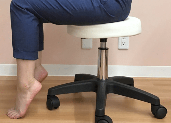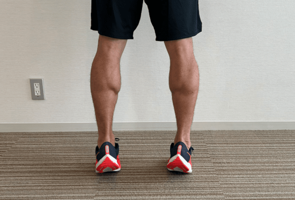 양발을 골반 너비로 벌리고 서서 뒤꿈치를 들어 올렸다가 천천히 내리는 것을