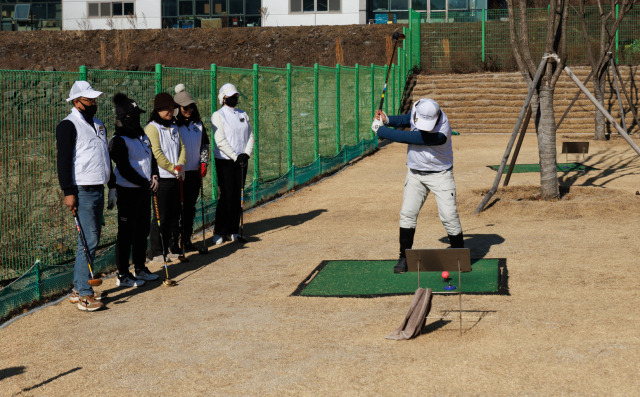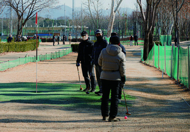 지난 6일 대구 북구 서변동 강변파크골프장. 낮에도 수은주 0℃에 가까운 쌀쌀한 날씨에 강바람이 은근히 차가운 날씨에도 이 곳은 파크골프를 치러 온 사람들로 북적였다. 파크골프 클럽을 든 사람들은 네 명씩 모여 조를 짠 뒤 1번 홀 티샷하는 자리로 이동했다.