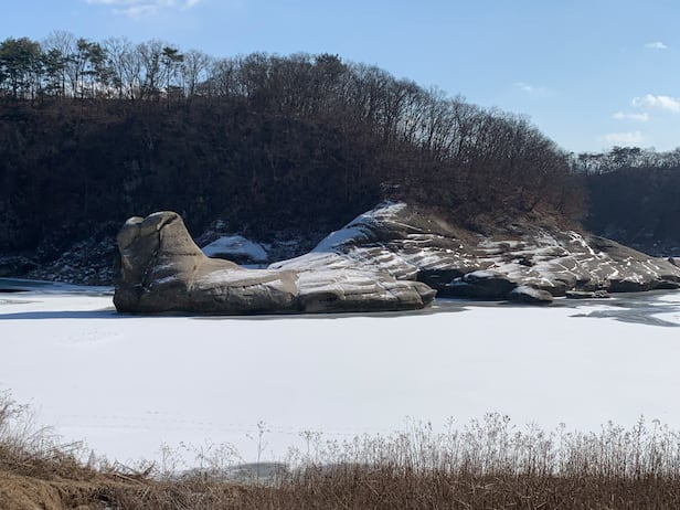 눈이 내린 날 경기도 포천의 화적연(禾積淵)은 특별하다. 한탄강과 어우러진 고고한 겨울 풍경이 백미다. 화적연은 강이 굽이쳐 흘러 깊은 연못처럼 보이는 곳에 마치 볏단을 쌓아 올린 것 같은 바위가 솟아 있다해서 불린 이름이다. 살포시 눈이 덮히면 바위 형상이 도드라져보인다. 그덕분에 ‘볏가리소’라 한 유래를 짐작할 수 있다.