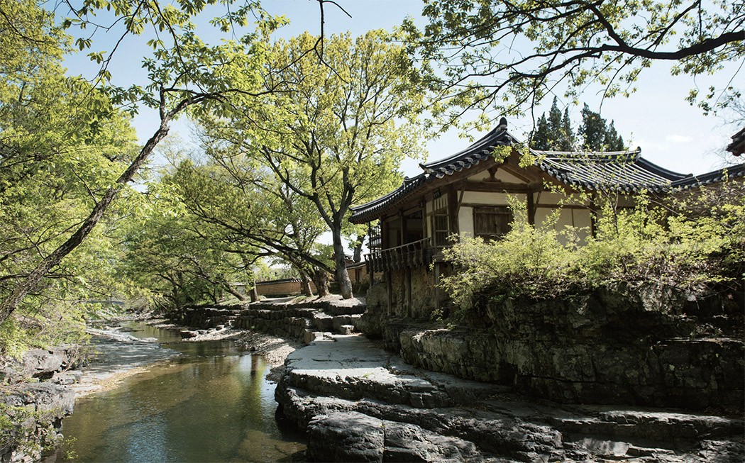 회재유물관을 나와 독락당과 계정을 둘러봤다. 독락당은 담을 활용해 외부에는 폐쇄적이지만 계곡 쪽으로는 열려 있다. 담장 가운데 살창으로 떡갈나무의 초록 잎이 보이고 옥산천 물소리가 나직이 들려왔다. 유년에 수학했다는 계정에 오르니 난간 아래가 바로 계곡이다. 정자의 반은 집 안쪽에 반은 계곡 쪽에 세워져 자연과 하나가 됐다.
