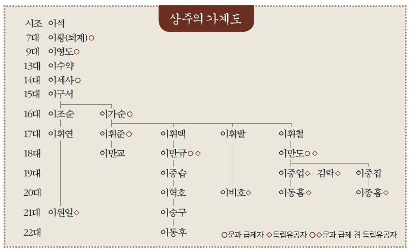 상주의 고향은 경북 안동이다. 또 안동에서도 예의범절이 가장 깍듯하다는 도산면 토계리 하계마을 출신이다. 하계마을은 옆으로 낙동강이 흐른다. 이 마을은 본래 퇴계 이황 선생의 후손이 모여 사는 진성 이씨 집성촌이었다. 토계라는 개울은 퇴계 종택이 있는 상계마을을 지나 하계마을에서 낙동강 상류로 흘러든다. 하계마을은 안타깝게도 1975년 안동댐이 건설되면서 수몰됐다. 누대로 고향을 지켜온 퇴계 후손들은 도시로 뿔뿔이 흩어졌다. 상주가 대구로 떠난 것도 그때였다. 그는 퇴계 선생 15대 손이다.