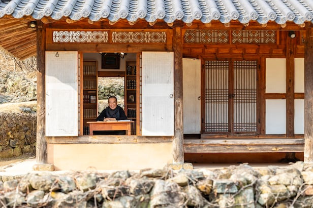 날이 따뜻했다면 느티나무 아래 나와 볕을 쬐고 있을 노인들마저 모습을 감춘 좁다란 길, ‘김용택의 작은 학교’란 간판을 따라가니 낡은 한옥 대신 10년 전에 새로 고쳐 지었다는 생가 앞에서 시인이 먼저 나와 팔을 흔들었다. “벽면에 흙이 무너져 내려 한옥 일부를 해체해서 최대한 복원하고, 내부는 현대식으로 단장했어요. 덕분에 날이 좋을 땐 문을 활짝 열어둬요. 그러면 마을 앞 ‘섬진강 자전거 길’을 지나가던 이들이나 여행객들이 잠시 들러 툇마루에 앉아 쉬어가기도 하고, 낮잠을 자고 가기도 합니다.” 상량문 대신 생가 툇마루 한쪽엔 ‘回文齋(회문재)’라 쓴 현판이 ‘대충’ 놓여 있다. ‘글이 모여든다’는 뜻의 이곳 회문재에서 김용택은 섬진강 연작을 쓰며 ‘섬진강 시인’이라는 이름을 얻었다. 회문재는 마을 인근의 ‘회문산(回文山)’에서 따온 이름이기도 하고, 시인이 다시 고향에 돌아와 글을 쓰는 공간이라는 뜻도 담겨 있다. 회문재를 사이에 두고 양쪽엔 단층짜리 자택과 서재 건물이 자리한다. “있는 듯 없는 듯 주변 자연환경을 해치지 않는 선에서 짓기 위해 건축 당시 아내가 고민을 많이 했다”는 건물과 일대를 보고 건축가 유현준도 고개를 끄덕였다고. 현재 생가인 회문재와 서재 건물은 ‘김용택 문학관’ 역할을 하고 있다.