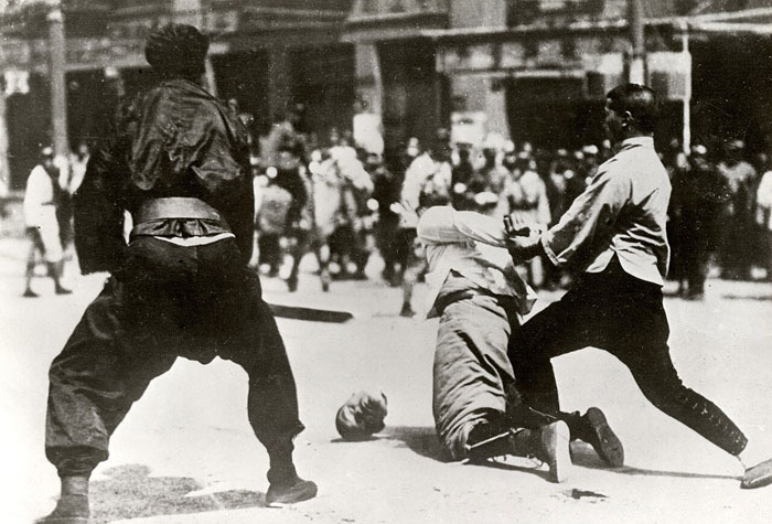 1927년 4월 12일 오전 4시, 난데없는 한 가닥 나팔 소리가 곤한 새벽잠에 떨어진 상하이(上海) 시민들의 귓가를 강타했다. 어린 까마귀 울음에 호응하는 어미 까마귀 울음처럼 멀지 않은 곳에서 고성의 사이렌이 울렸다. 그 신호에 맞춰서 연발탄의 총성이 매캐한 화약 냄새를 내뿜으며 온 도시를 뒤흔들었다. 그 순간 어디선가 잠복 중이던 수백 명의 무장한 사내들이 격한 함성을 지르며 대로로 쏟아져 나왔다. 모두 남색 데님 유니폼을 입고 팔뚝에 백색 완장을 찬 상태였다. 그 완장엔 공인(工人·노동자)을 의미하는 듯 ‘工’자가 적혀 있었다.[Harold R. Isaacs, The Tragedy of the Chinese Revolution(Secker & Warburg, 1938; Haymarket Books, 2009), 150~151]