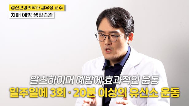 두 번째 원칙은 운동이다. 알츠하이머 치매 위험 요인의 82%가 신체 활동 부족(저활동성)에서 비롯된다. 김우정 교수는 “뇌의 노화를 막기 위해 일주일에 3회 이상, 20분 이상의 유산소 운동과 함께 근력 운동을 병행하는 게 좋다”고 했다. 무릎 관절이 좋지 않다면 슬로우 조깅이나 아쿠아로빅 같은 운동을 선택할 수 있다.